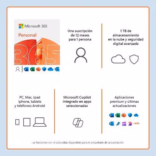 [5] Se requiere una suscripción a Microsoft 365 Personal o Familia; Las funciones de IA solo están disponibles para el propietario de la suscripción y no se pueden compartir; Se aplican límites de uso. Más información [https://go.microsoft.com/fwlink/?linkid=2280151]