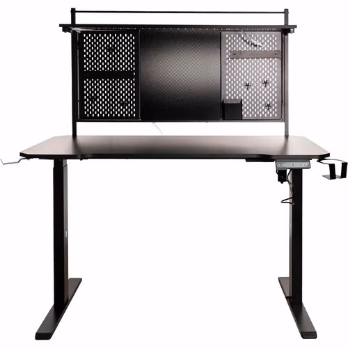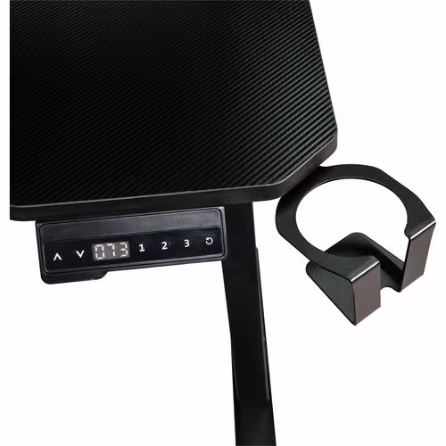 Escritorio Gaming Naceb NA-0647 de fibra de carbón color negro, Electrico, Accesorios: Canasta para cables, Portavasos, Ganchos, Tablero, Iliminacion LED con control, Medidas: Altura 1.18m, Largo 1.20m, Profundidad 60cm