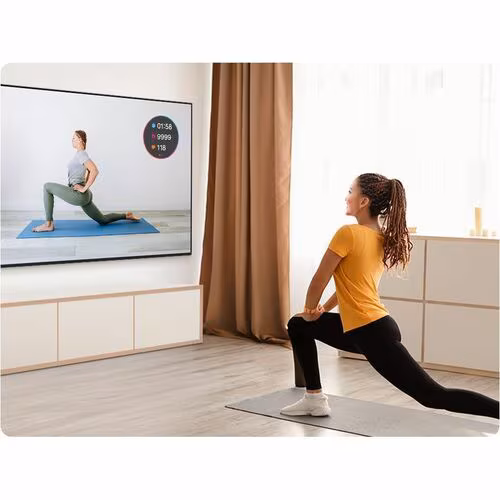 El sistema operativo Tizen OS permite acceder a tus aplicaciones favoritas como Netflix, YouTube, Prime Video y más, directamente desde el televisor. También incluye Samsung TV Plus, que ofrece más de 100 canales gratuitos sin necesidad de suscripción. Es compatible con Alexa y Google Assistant, lo que permite controlar el televisor por voz y conectarlo con otros dispositivos inteligentes.